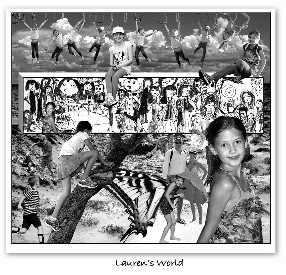 | Here's a work Kim & I just finished to celebrate the most beautiful girl in the world Lauren Elizabeth Miller. The artwork in the center was created by Lauren when she was about 6 years old, it shows amazing depth and complexity in this hand drawn piece. (Click on the art work to get the full sized image.) |