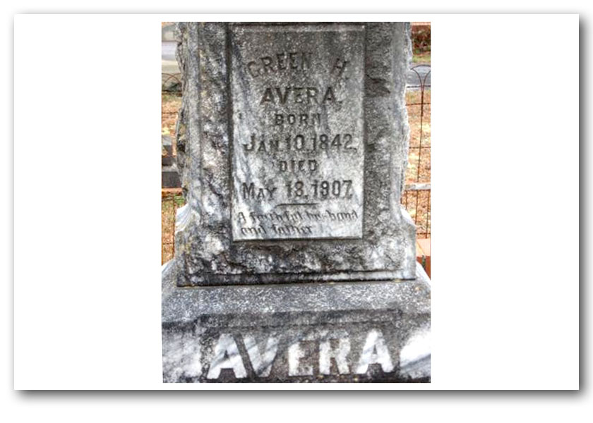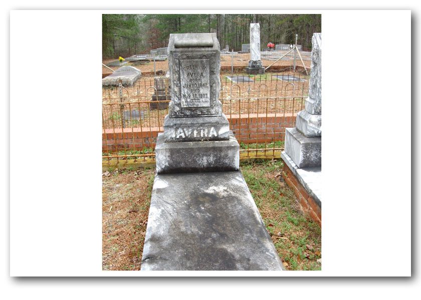 Green Hood Avera's grave in Little Union Primitive Baptist Church Cemetery, Crawford Co., Georgia