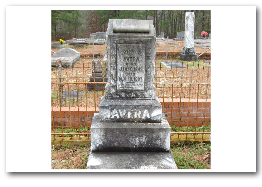 Green Hood Avera's grave in Little Union Primitive Baptist Church Cemetery, Crawford Co., Georgia Green Hood Avera's grave in Little Union Primitive Baptist Church Cemetery, Crawford Co., Georgia